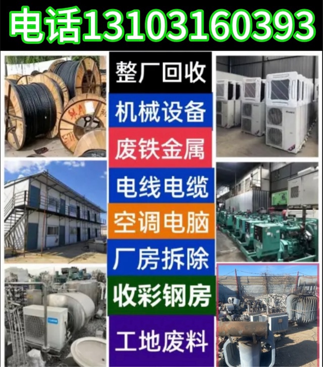 回收二手设备、空调、宾馆设备、酒店厨房设备、工业机械设备、电线电缆、发电机、变压器、工厂设备回收、建筑废料、工厂废料、建筑废料、废旧金属等电话131031603