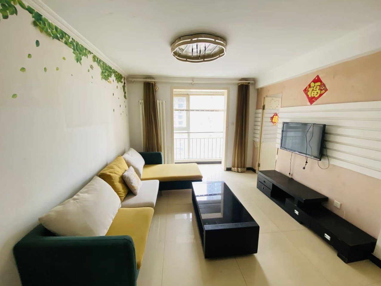 福成五期纯南向两居室出租,带两个南向大阳台,押一付一,联系电话16603163507同微
