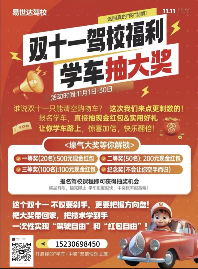 📌十一月最后一天 💨抓紧行动起来,给学车计划画上开始符号 ⏰错过今日再等月,现在报名正当时 🚀即刻开启,早日实现驾驶梦想 📞驾考学车热线: 请联系我